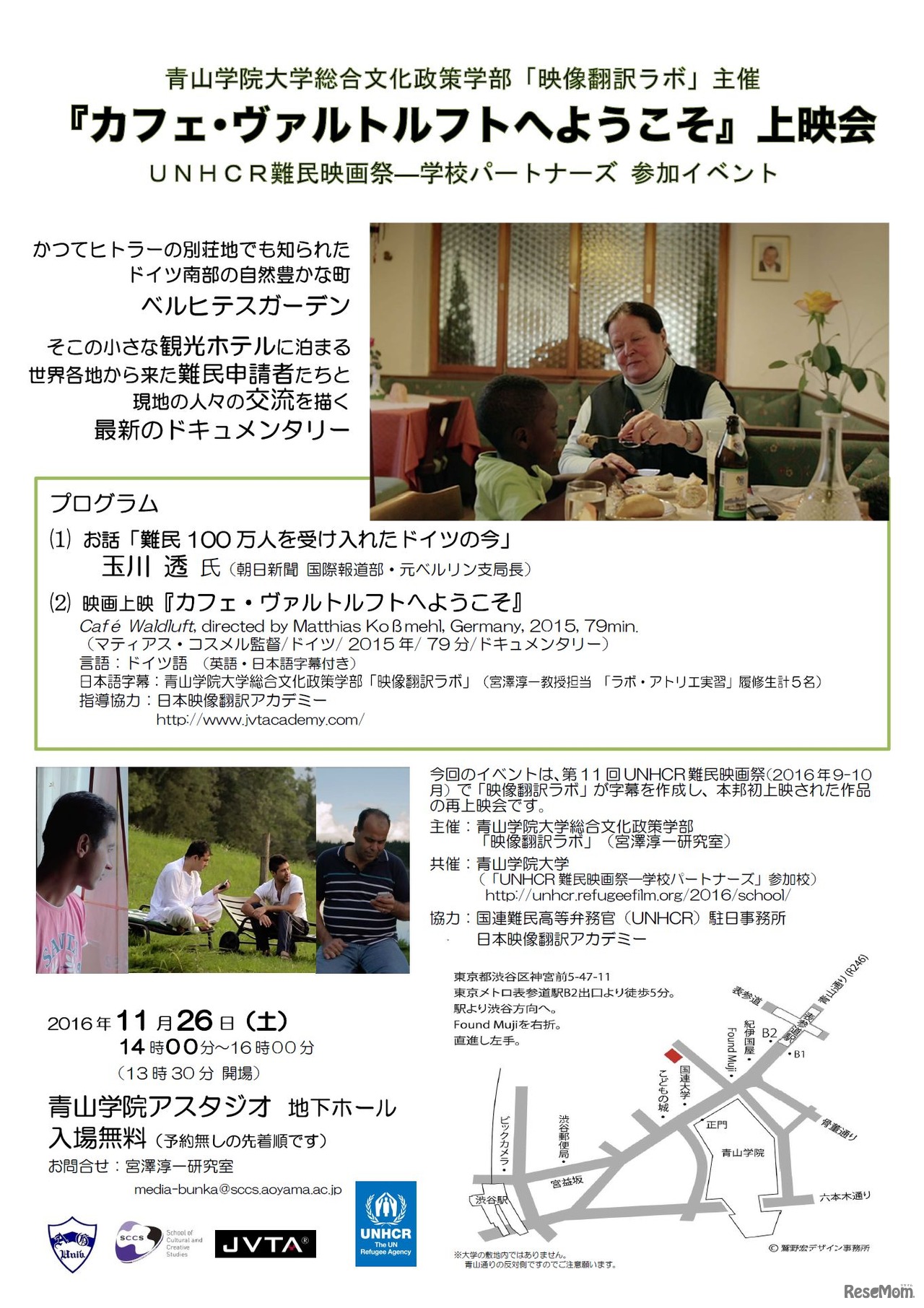青山学院大学総合文化政策学部「映像翻訳ラボ」は11月26日、青山学院アスタジオで映像翻訳ラボが日本語字幕を担当した映画「カフェ・ヴァルトルフトへようこそ」の自主上映会を開催する。入場は無料。