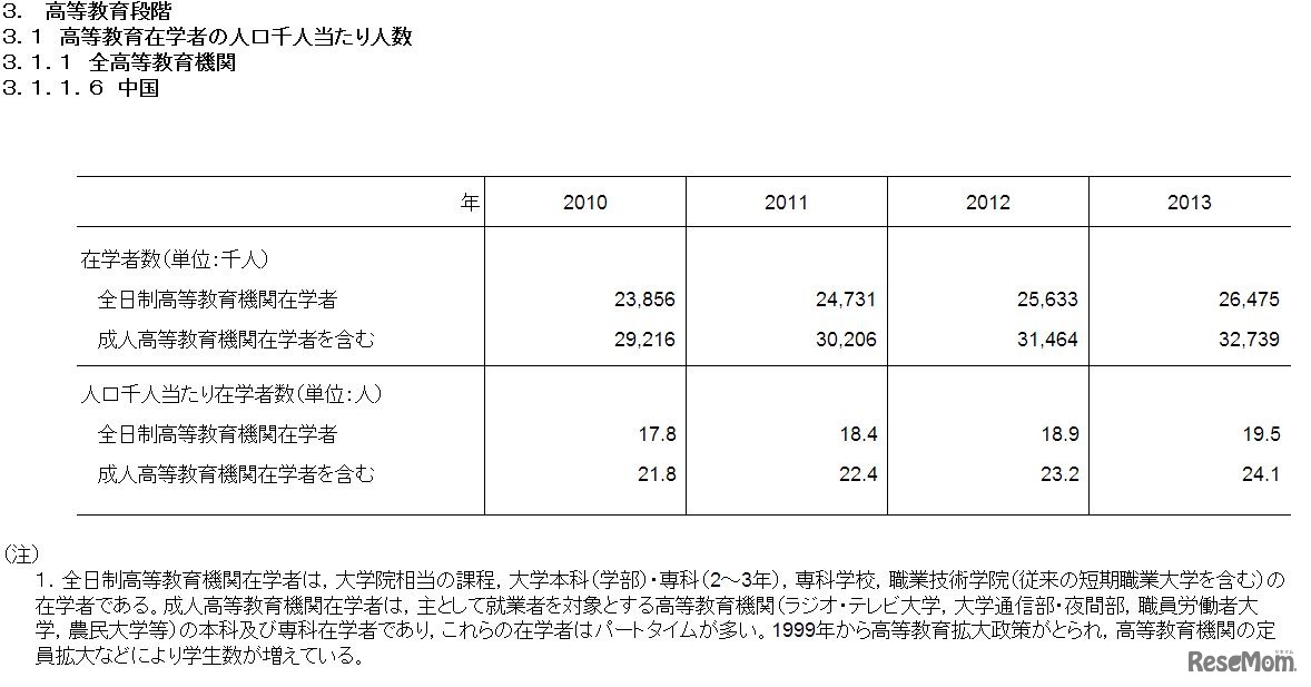 文部科学省は11月25日、7か国の教育状況を統計データで示した「諸外国の教育統計」平成28年版(2016年度版)を公表した。高等教育在学者の人口千人あたりの人数は、韓国がもっとも高く、日本がもっとも低いことが明らかになった。