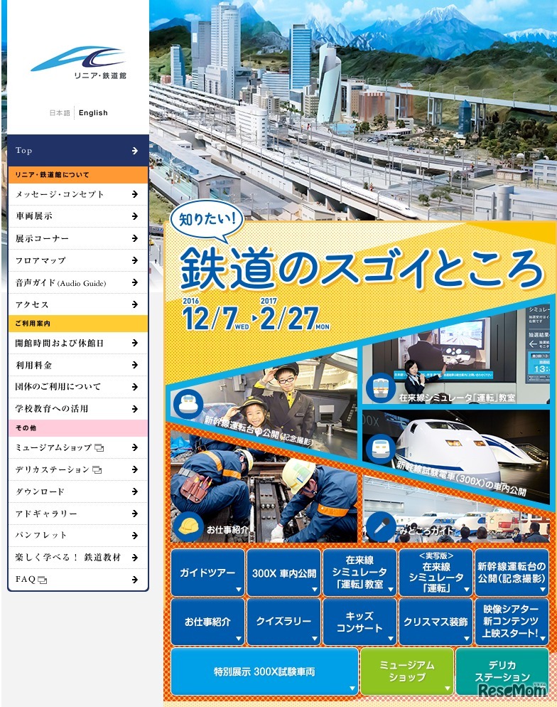 JR東海が運営するリニア・鉄道館では、平成28年12月7日から平成29年2月27日にかけて、安全運行のしくみがわかるガイドツアーや、時速443キロを記録した新幹線車両の特別公開などを取り入れた冬イベントを実施する。