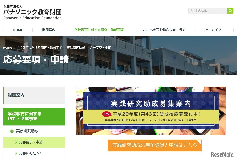 パナソニック教育財団は、助成を受けながらICTを活用した校内の実践研究に取り組む小学校、中学校、高等学校、特別支援学校などを募集している。「一般」枠には1年間の研究に対して1件50万円、「特別研究指定校」枠には2年間の研究に対して1件150万円を助成する。