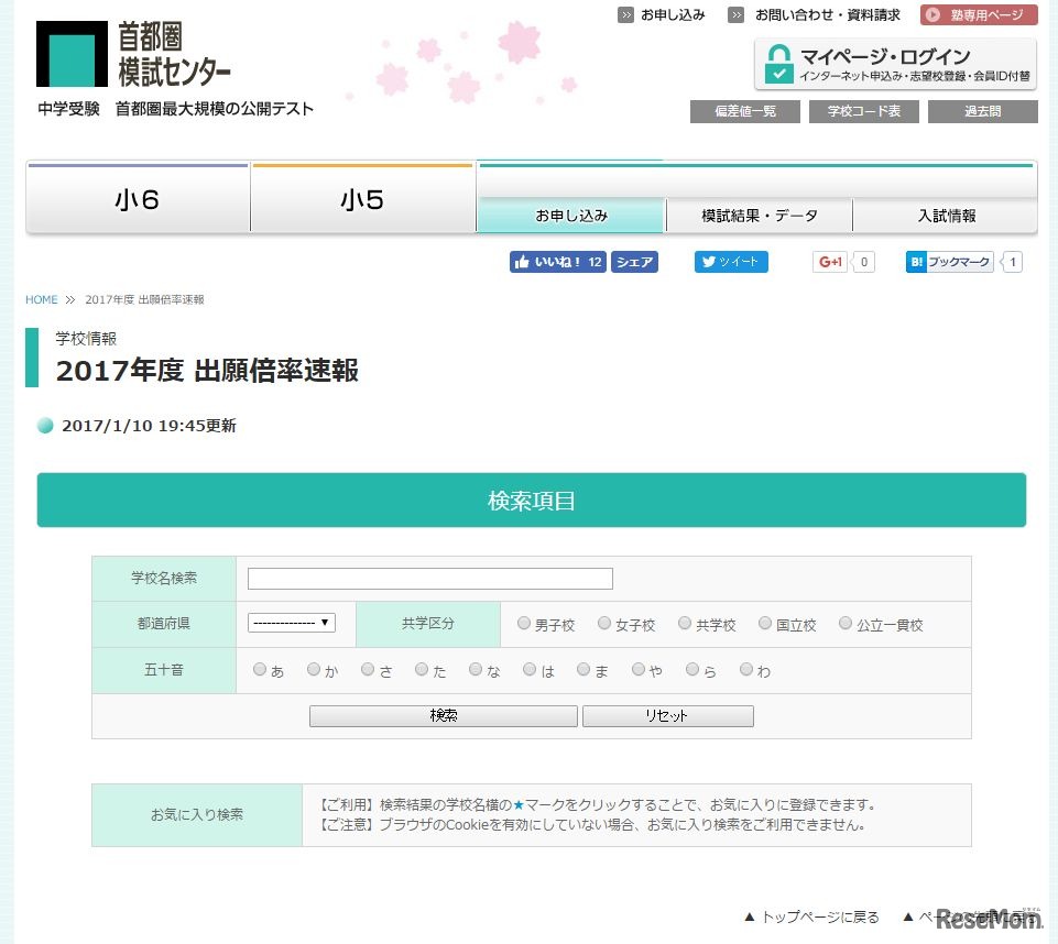 首都圏模試センター:2017年度 出願倍率速報