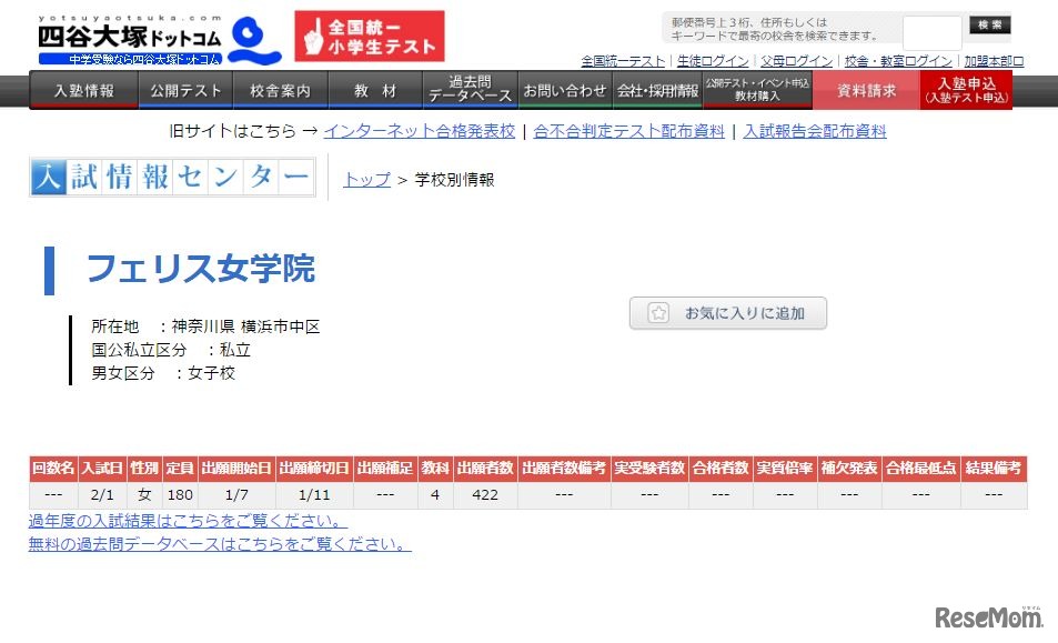 四谷大塚ドットコム入試情報センターは、渋谷教育学園幕張とフェリス女学院の最終出願者数を発表した。渋谷教育学園幕張(1次入試)は前年比115名増の2,014名、フェリス女学院は前年比31名減の422名となった。
