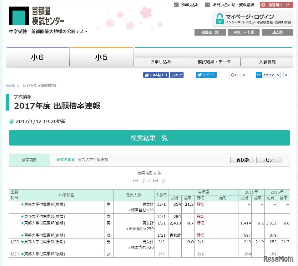 【中学受験2017】出願倍率、渋幕(1)9.4倍・フェリス2.3倍 4枚目の写真・画像