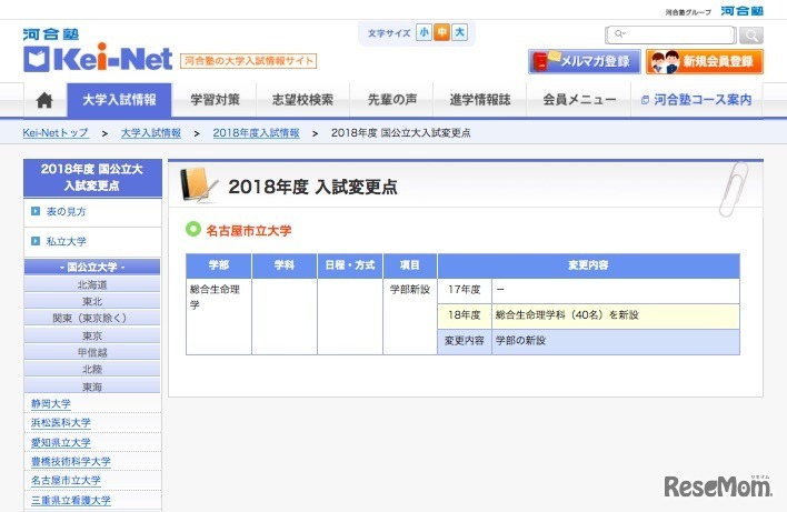 河合塾の大学入試情報サイト「Kei-Net」は1月24日、平成30年度(2018年度)入試情報として国公立大学・私立大学の入試変更点の最新情報を掲載。首都大学東京が都市環境学部の学科改組を行うほか、明治大学が商学部一般選抜にて英語4技能試験利用方式を導入する。
