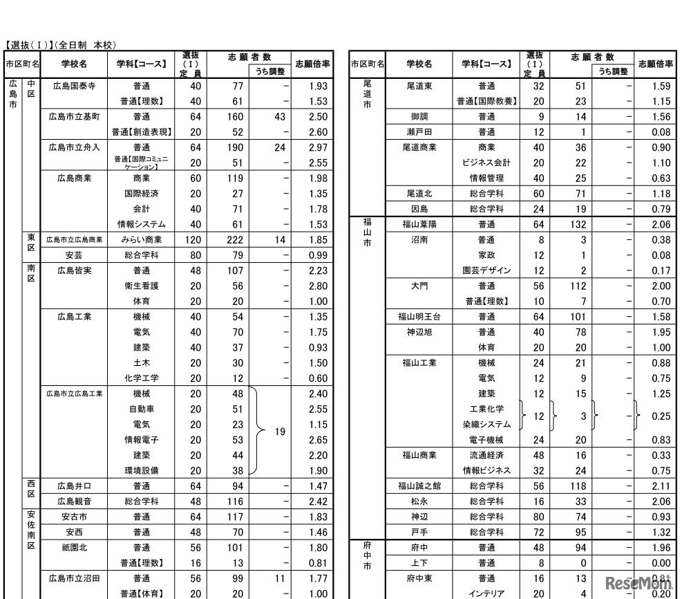 【高校受験2017】広島県公立高入試選抜(I)の志願状況・倍率(1/25時点)広島1.48倍・市立舟入2.97倍ほか 2枚目の写真・画像
