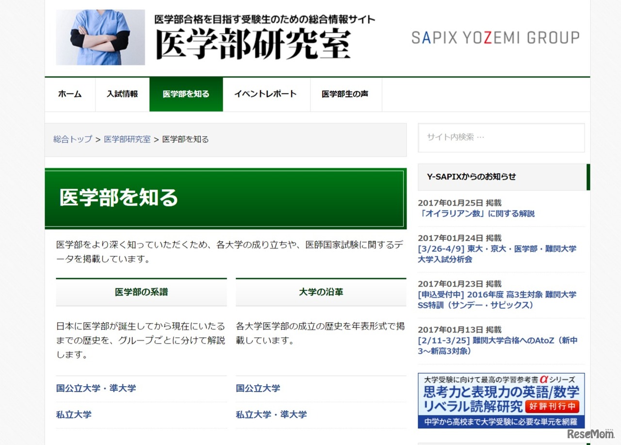 SAPIX YOZEMI GROUPの医学部合格を目指す受験生のための総合情報サイト「医学部研究室」は関西地区の医学部番付を作成し、Webサイトに1月27日掲載した。医学部の格付けは入試難易レベルともある程度重なるとして、関西地区では京都大と大阪大を横綱に据えた。