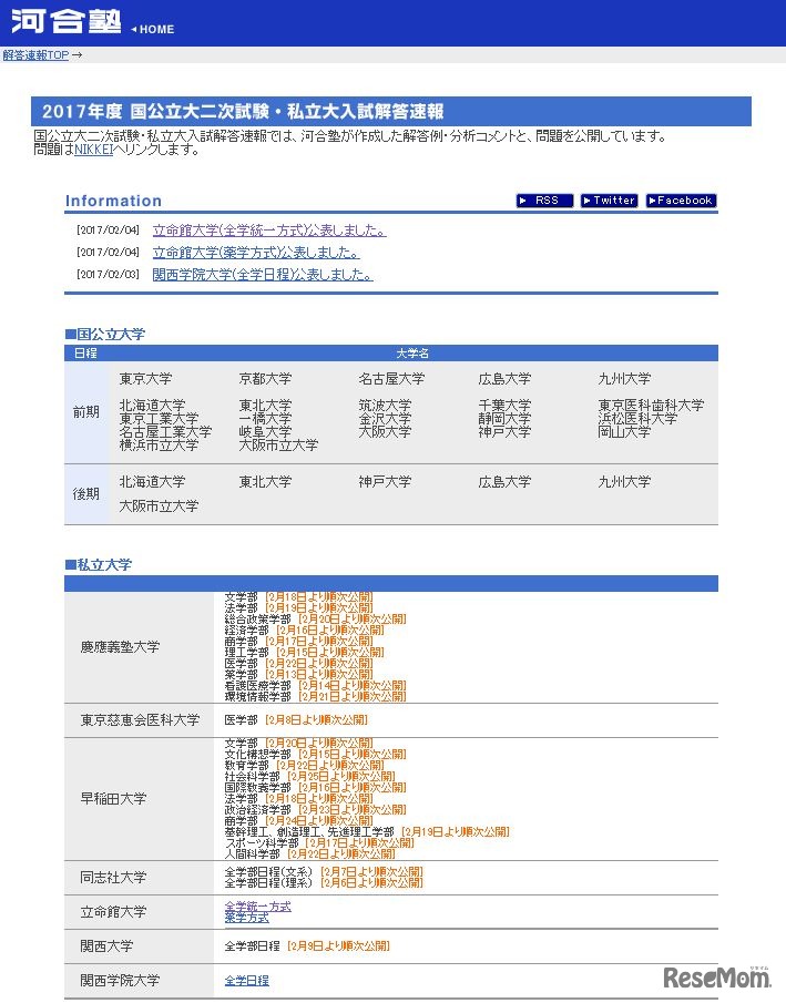 河合塾の大学入試情報サイトKei-Netは、2017年度入試の私立大学の志願状況を公表。全体の概況のほか、学部系統別、主要私立大学の2月3日現在の志願状況をまとめている。主要102大学では前年度比107%と志願者数は増加している。