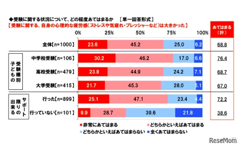 受験に関するストレスは大きかったか