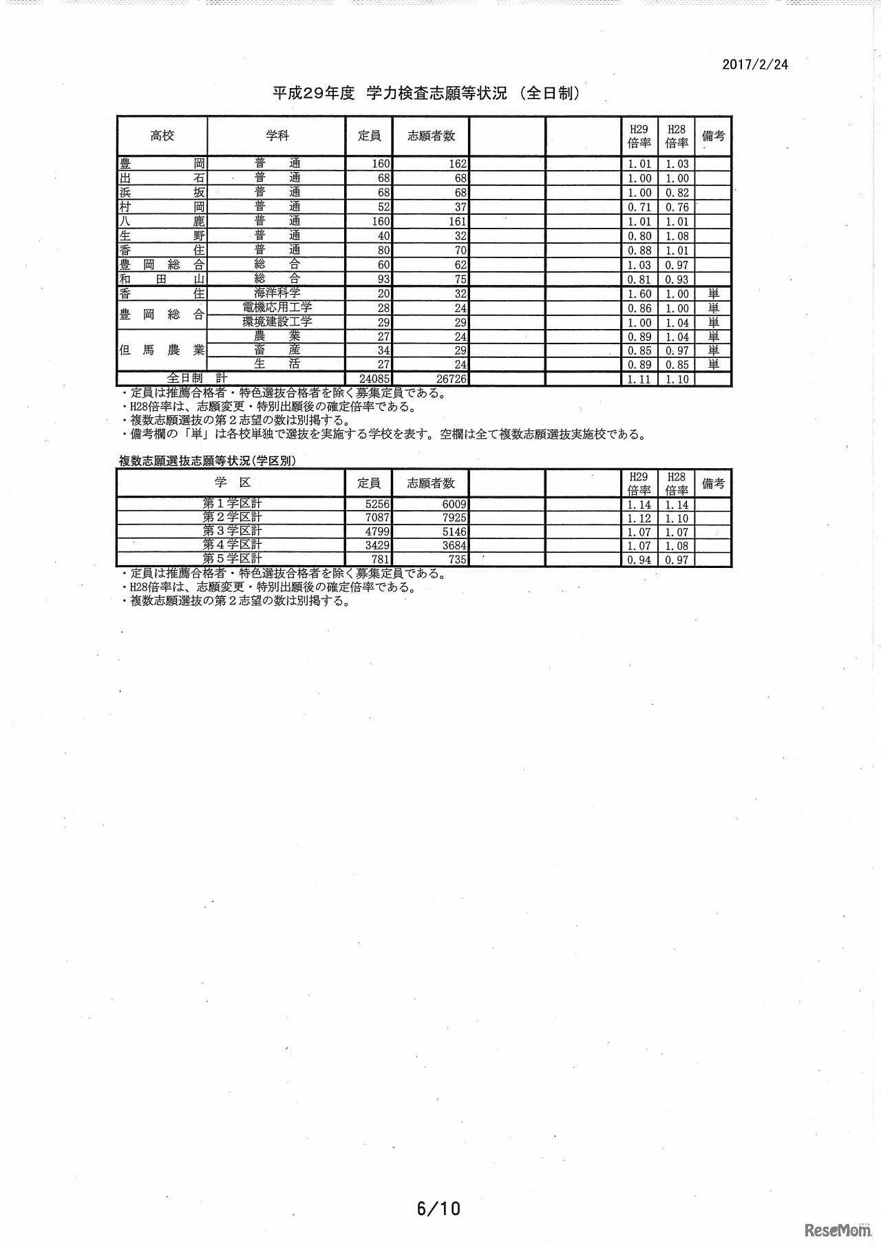 兵庫県は平成29年2月24日、平成29年度(2017年度)の公立高等学校入学者選抜における出願状況について発表した。全日制最終日(締切時)における合計は、定員24,085人に対し、志願者数26,723人で、倍率は1.11倍だった。