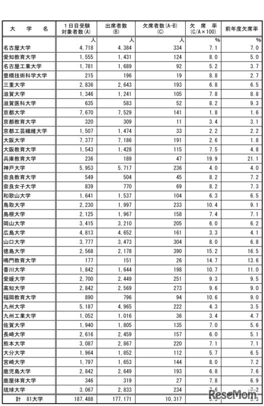 【大学受験2017】国公立2次試験(前期)欠席率6%…京大・阪大・九大で前年増 3枚目の写真・画像
