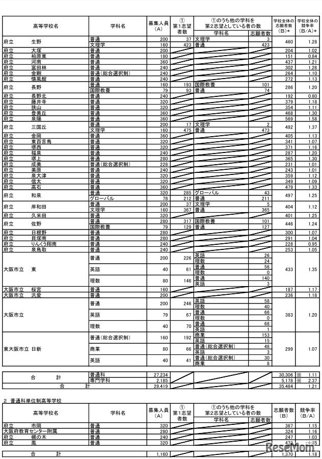 大阪府教育委員会は平成29年3月7日、平成29年度(2017年度)大阪府公立高等学校一般入学者選抜(全日制)の志願状況を発表した。各高校の出願倍率は、茨木(普通・文理学)1.49倍、大手前(普通・文理学)1.29倍など。