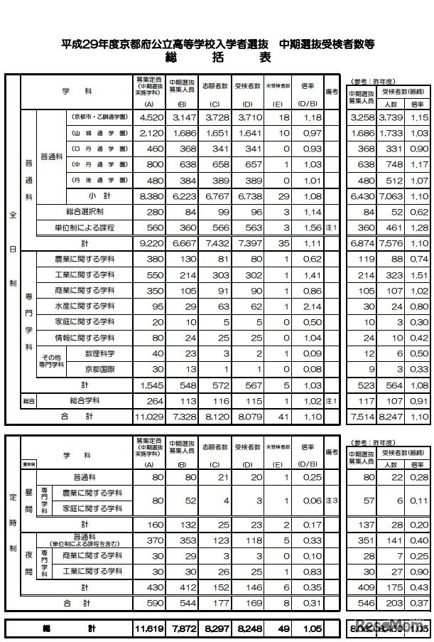 京都新聞は平成29年3月7日、平成29年度(2017年度)京都府公立高等学校中期選抜の問題と解答をWebサイトに掲載した。3月8日実施の滋賀県立高等学校一般選抜の解答速報は、情報が入り次第順次掲載するという。