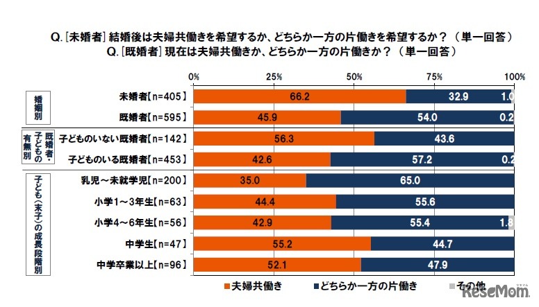 未婚者のお小遣いは平均3.9万円であるのに対し、子どものいる既婚者は平均2.4万円であることが、SMBCコンシューマーファイナンスの調査により明らかになった。また、結婚後に夫婦共働きを希望する未婚者は6割以上だった。