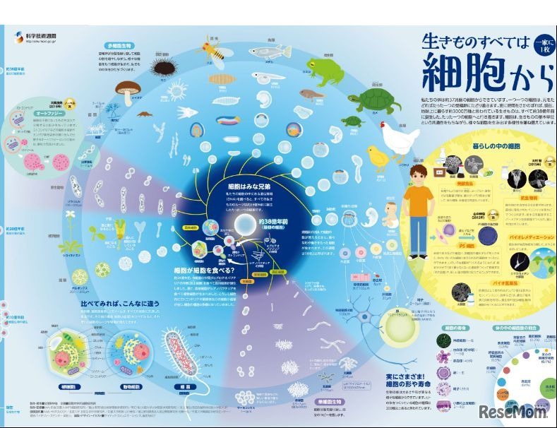 文部科学省は3月10日、「一家に1枚 生きものすべては細胞から」ポスターを刊行した。科学技術の理解増進施策の一環として実施しており、科学技術週間Webサイトから「一家に1枚」ポスターのシリーズがダウンロードできる。