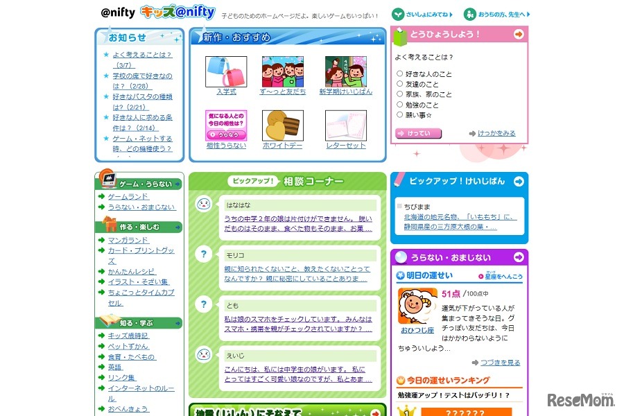 ニフティが運営する子供向けサイト「ニフティキッズ」は、小…