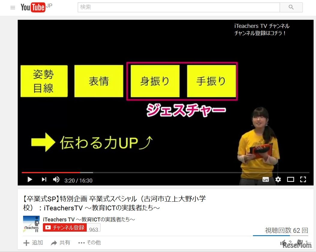 iTeachersは3月29日、YouTube公式チャンネル「iTeachers TV ~教育ICTの実践者たち~」において、スピーチについて考察した動画「【卒業式SP】特別企画 卒業式スペシャル(古河市立上大野小学校)」を公開した。ゲストとして大野の児童らが参加している。