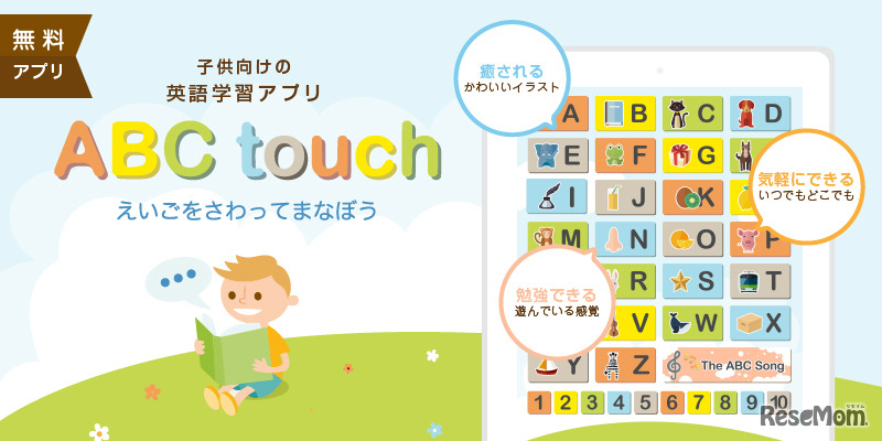 Skype(スカイプ)を利用したオンライン英会話スクール「hanaso kids」は、hanaso kidsオリジナルの英語学習無料アプリ「ABC touch」をリリース。初めて英語に触れる子ども向けのアプリだ。アルファベットやABCソングなどを楽しく学ぶことができる。