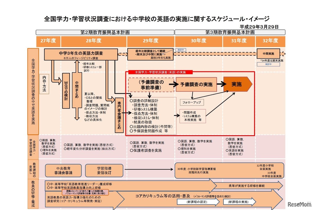 文部科学省の専門家会議は3月29日、全国学力・学習状況調査(全国学力テスト)における中学校の英語の実施について、最終報告を公表した。中学3年生を対象に平成31年度から3年に一度、「聞く」「読む」「書く」「話す」の4技能のテストを実施するとした。