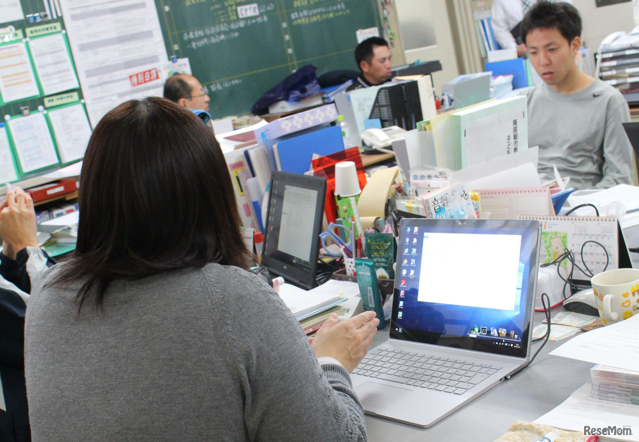 校務用途と教務用途の両立を実現するため、マイクロソフトのノートPC「Surface Book」を教員に配付。今後は、Surface Bookを活用して、ICTを活用したより効果的な授業を実践していくという。