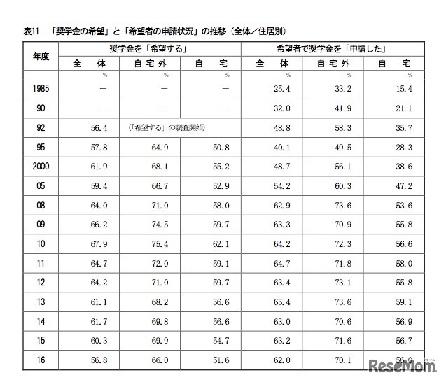 奨学金の希望と申請状況
