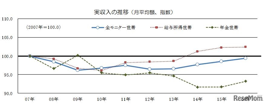 実収入の推移(月平均額、指数)