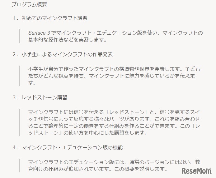 アドミンティーチャーズ「マインクラフトとプログラミング教室」 概要
