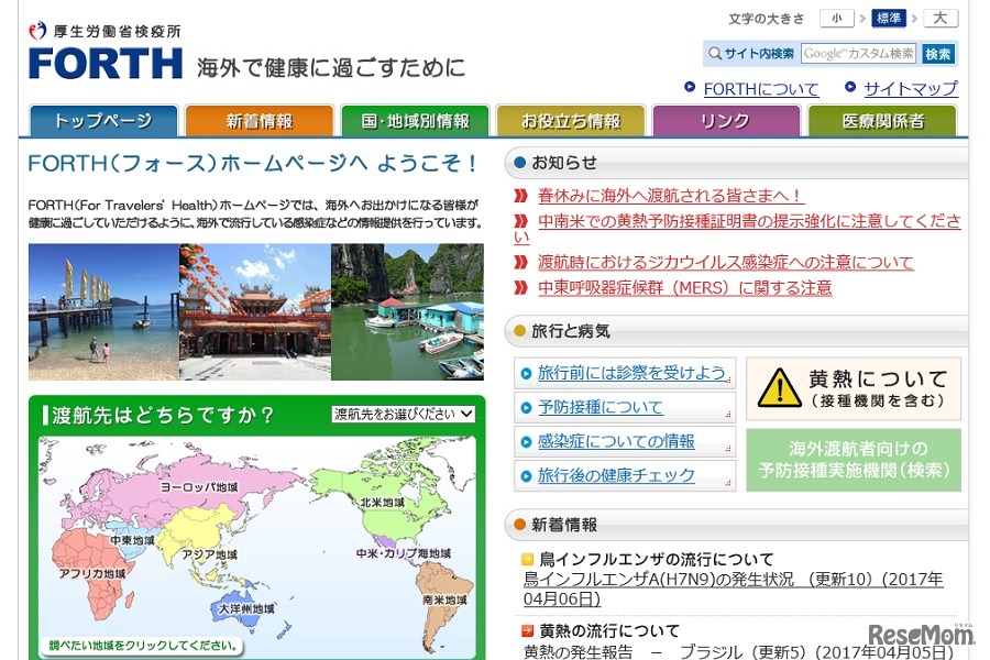 厚生労働省は4月7日、ゴールデンウィーク中の海外渡航における感染症予防について最新情報をWebサイトに公開した。海外で注意すべき感染症と具体的な対策についてまとめ、注意を呼びかけている。