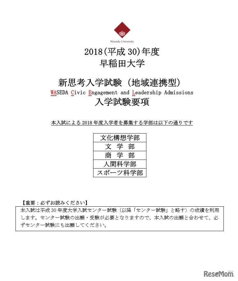 【大学受験2018】早大、新設「新思考入試(地域連携型)」の入試要項公開 2枚目の写真・画像