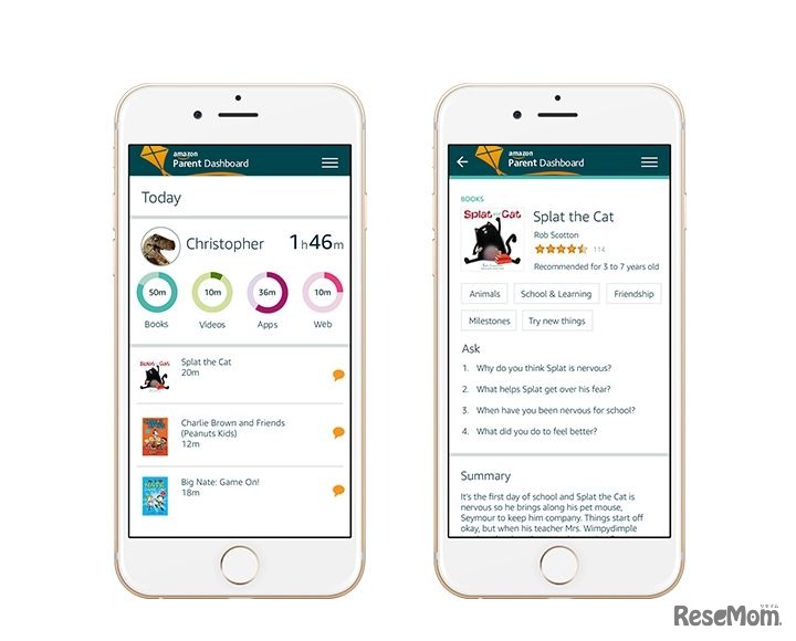 米Amazon.com(以下、Amazon)は4月12日(現地時間)、子どものデバイス・メディア利用状況を視覚化する管理ツール「Parent Dashboard」を発表した。アプリ「Amazon FreeTime Unlimited」上で利用でき、子どもがどのアプリを利用したかを確認できる。