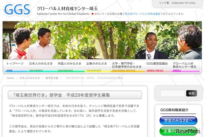埼玉県は4月17日より、海外留学を目指す若者を対象とした奨学金「埼玉発世界行き」の平成29年度奨学生の募集を開始する。県内在住もしくは親が県内在住の大学生・高校生らを対象に、3コース合計で90人を募集。応募は5月31日まで受け付ける。