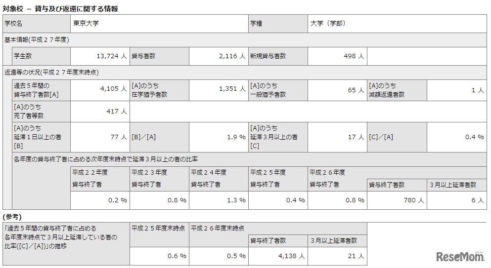 日本学生支援機構(JASSO)は4月19日、奨学金返還を滞納している人の割合を学校別に公表した。各学校が奨学生に対して借りすぎないことや返還の必要性について指導を徹底してほしいことから、情報公開したという。