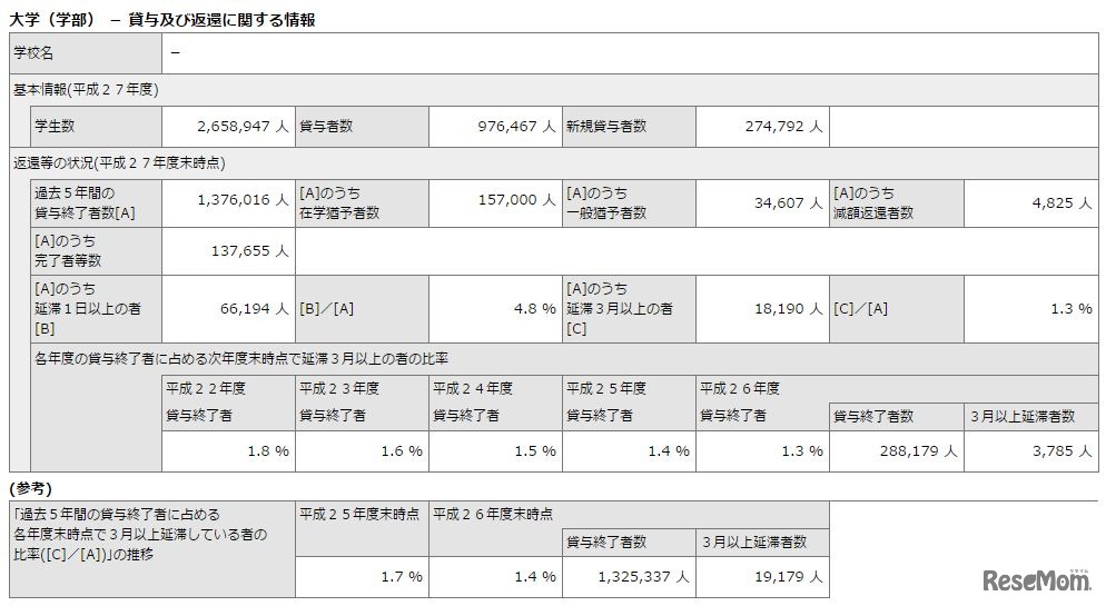 JASSO、奨学金滞納者の割合を学校別に公表 3枚目の写真・画像