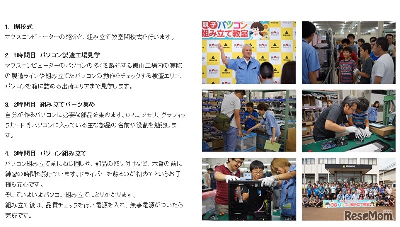 マウスコンピューターは7月29日、小学6年生とその保護者を対象とした「2017年度親子パソコン組み立て教室」を長野県の飯山工場で開催する。申込みは6月15日午後6時までWebサイトで受け付けている。