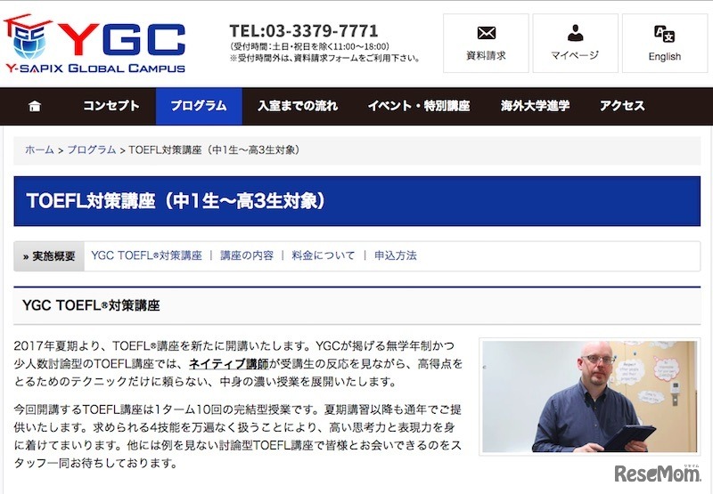 日本入試センターが運営する海外進学プログラム「Y-SAPIX Global Campus(YGC)」は、中高生を対象とした少人数制対話型のTOEFL対策講座を8月から開講する。日程は、サマータームが8月7日~11日と8月21日~25日、第2ターム以降は毎週水曜日に実施される。