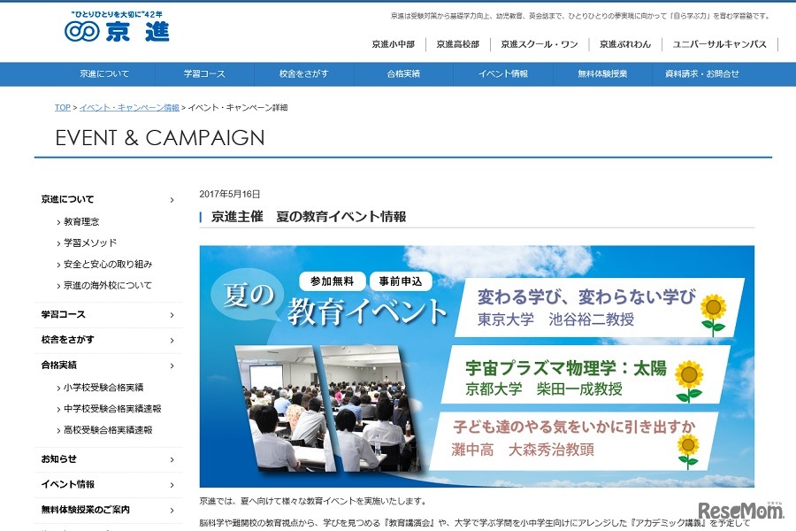 京進の夏の教育イベント