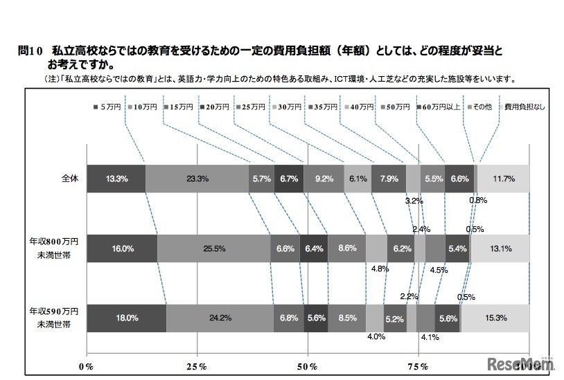 私立高校ならではの教育を受けるために一定の費用負担額(年額)として妥当な金額