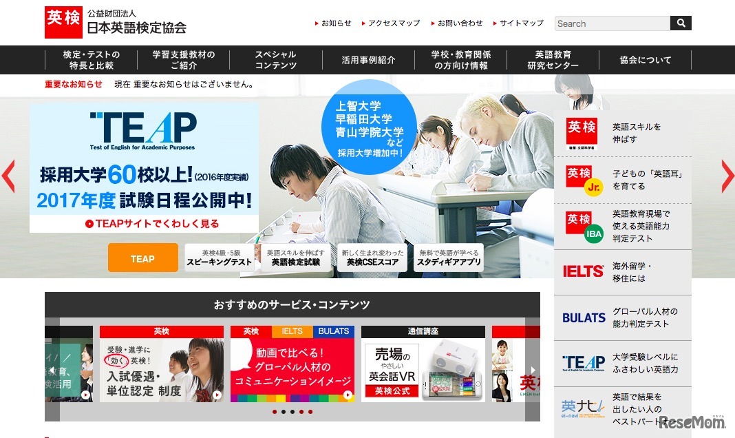 日本英語検定協会は、2017年度よりTEAP CBTの試験日を年2回に増やす方針の中、準備の一環として8月6日に2017年度版TEAP CBTのリハーサルを開催すると発表した。高校2年生以上のリハーサル受験者130名を募集する。申込みはWebサイトにて受付。