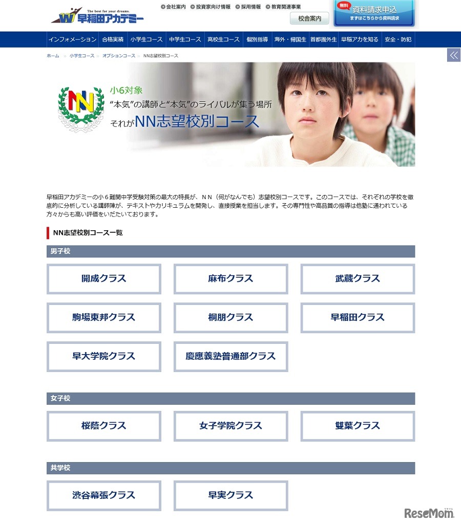 早稲田アカデミーは、小学6年生を対象とした「NN志望校別コース 志望校別オープン模試・保護者説明会」の第3回を7月16日・17日、第4回を9月2日に開催する。対象中学校は、開成・桜蔭・渋谷幕張など13校。受験料は無料。