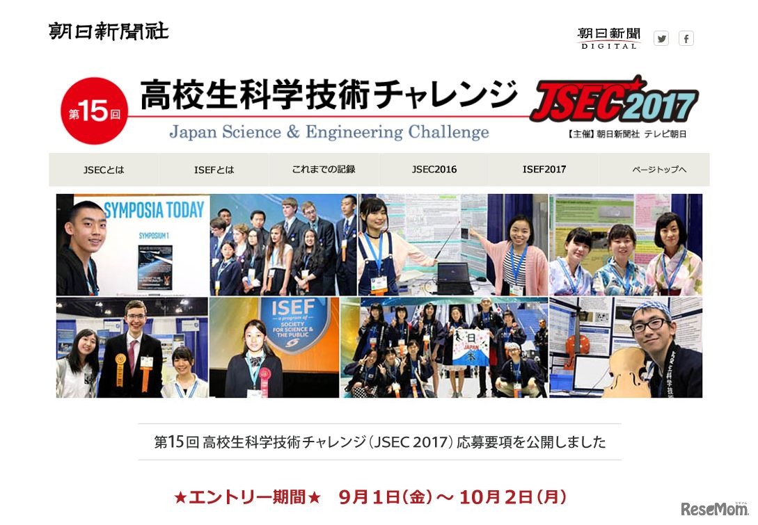 朝日新聞社とテレビ朝日は、科学技術の自由研究コンテスト「第15回高校生科学技術チャレンジJSEC2017」の作品を9月1日から10月2日まで募集する。対象は高校生・高等専門学校生の個人または3名までのチーム。上位入賞者は米国で開催される国際大会へ派遣される。