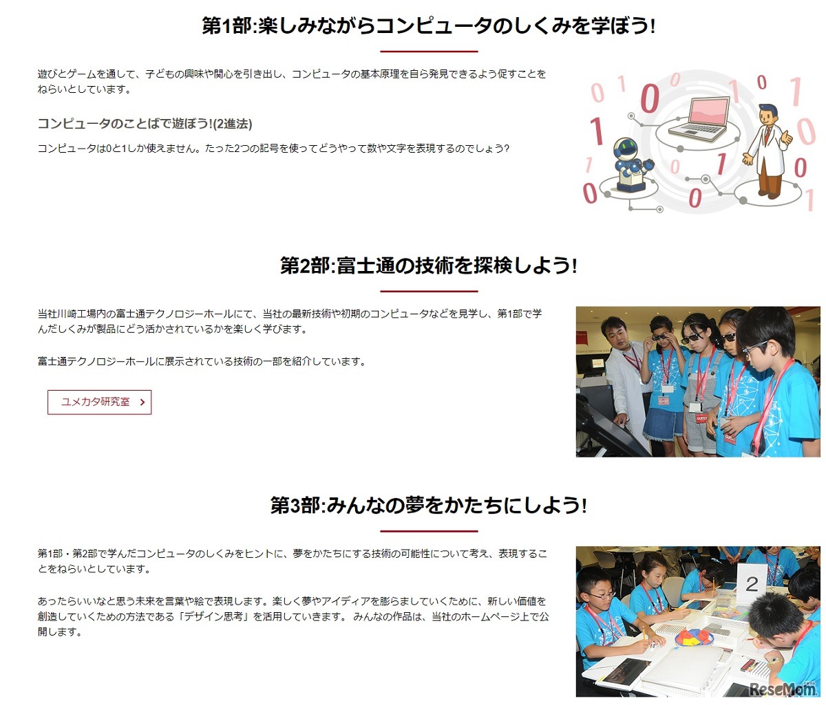富士通が運営する富士通キッズは8月5日、小学4年生から6年生を対象とした「富士通キッズイベント2017夢をかたちにするしくみ」を開催する。午前と午後の2回開催される。定員は各回35名。参加費無料。申込期間は7月4日から7月18日まで。