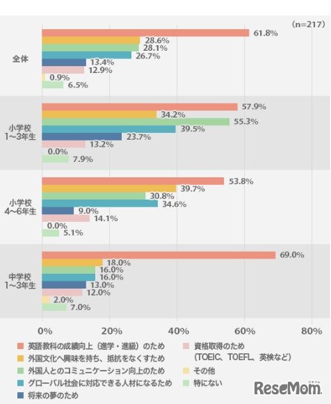 学校以外で英語を学習している子どもの半数以上が、小学3年生までに始めていることが7月10日、明光義塾による「子どもの英語学習に関する全国調査」の結果から明らかになった。学習の目的は、すべての学年で「成績向上」が最多だった。