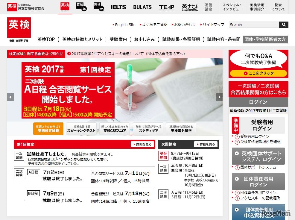 英検、7/2実施第2回二次試験の合否結果・成績表の閲覧開始 1枚目の写真・画像