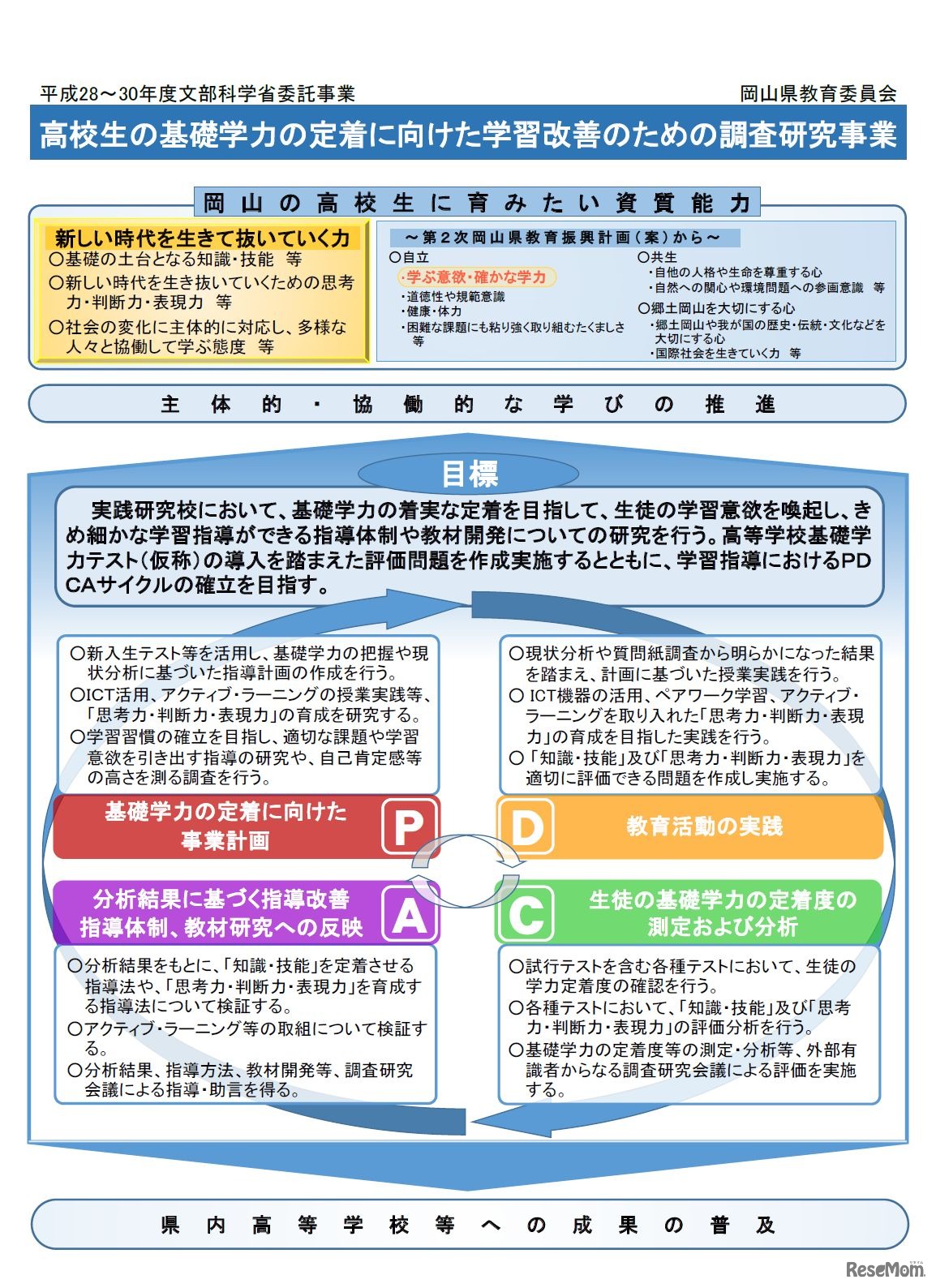 文部科学省は7月11日、「高校生の基礎学力の定着に向けた学習改善のための調査研究事業」の平成29年度採択事業一覧を公開した。北海道教育委員会、大阪府教育委員会、島根県教育委員会、文理開成学園など全17事業。