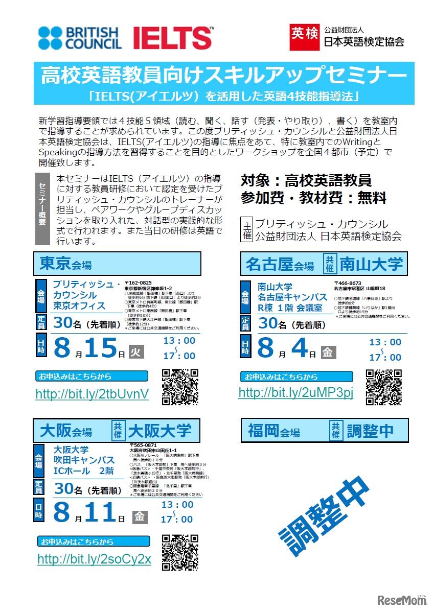 IELTS、高校英語教師向け4技能指導法スキルアップ無料セミナー 1枚目の写真・画像
