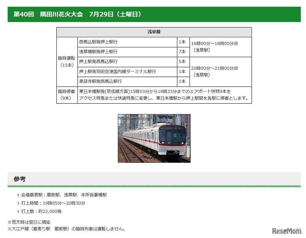 【夏休み2017】足立・隅田川など都内の花火大会、地下鉄・鉄道で臨時列車運行 3枚目の写真・画像