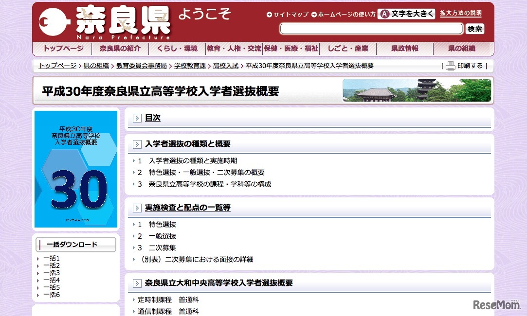 奈良県教育委員会は7月12日、平成30年度(2018年度)県立高等学校入学者選抜概要をWebサイトに公開した。特色選抜の学力検査および学校独自検査などは2月20日・21日に実施。一般選抜の学力検査は3月12日、合格発表は3月16日に行う。