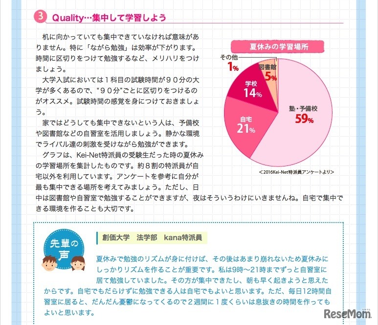 Kei-Net「夏休み40日間の過ごし方」 集中して学習しよう(一部)