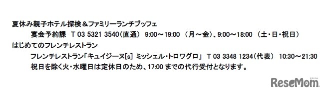 ハイアット リージェンシー 東京は、熟練のレストランマネジャーからテーブルマナーを学ぶ「はじめてのフレンチレストラン」を8月14日・21日、親子でホテルを探検できる「夏休み親子ホテル探検&ファミリーランチブッフェ」を8月13日に開催する。