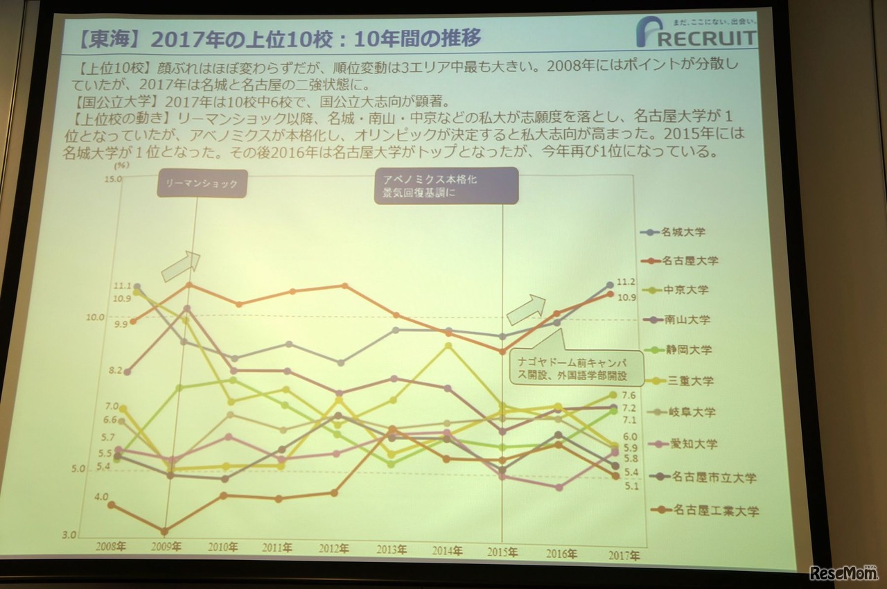 東海「志願したい大学」10年間の推移
