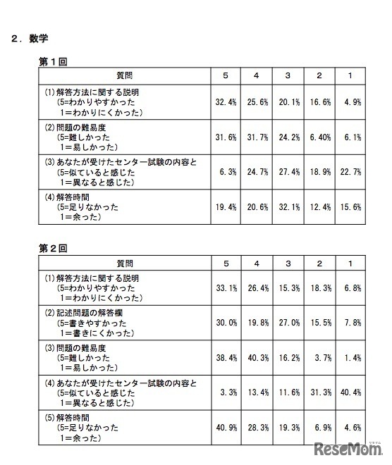 質問紙調査の結果(数学)